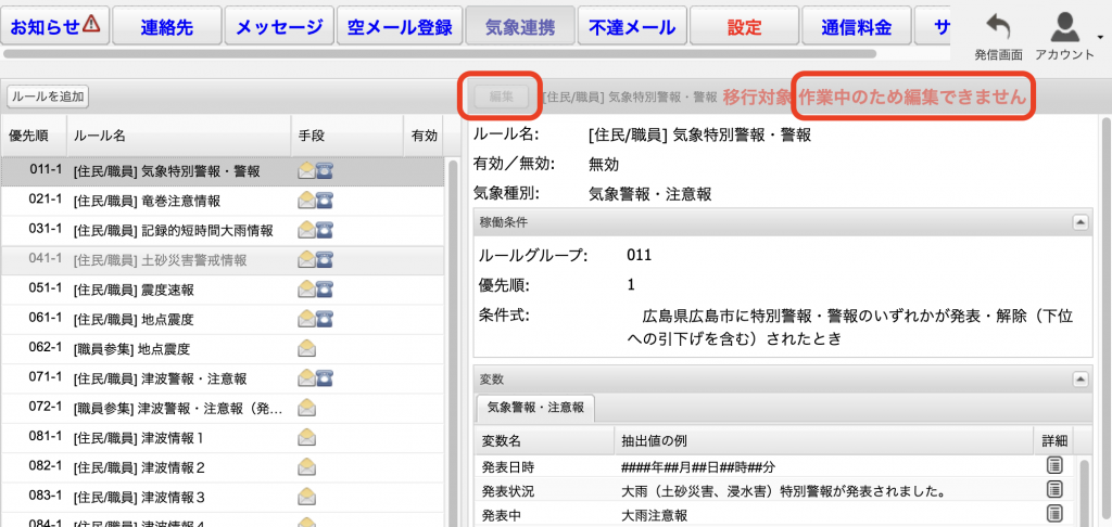 - 制限内容:移行対象電文のルールに限り、編集機能をロック